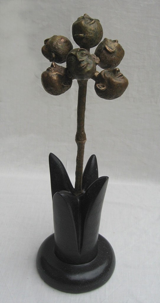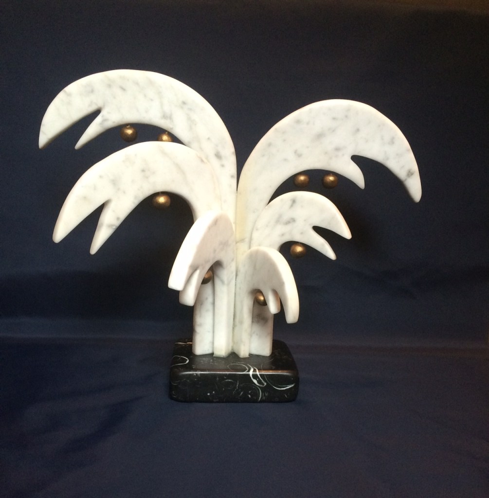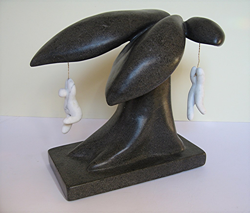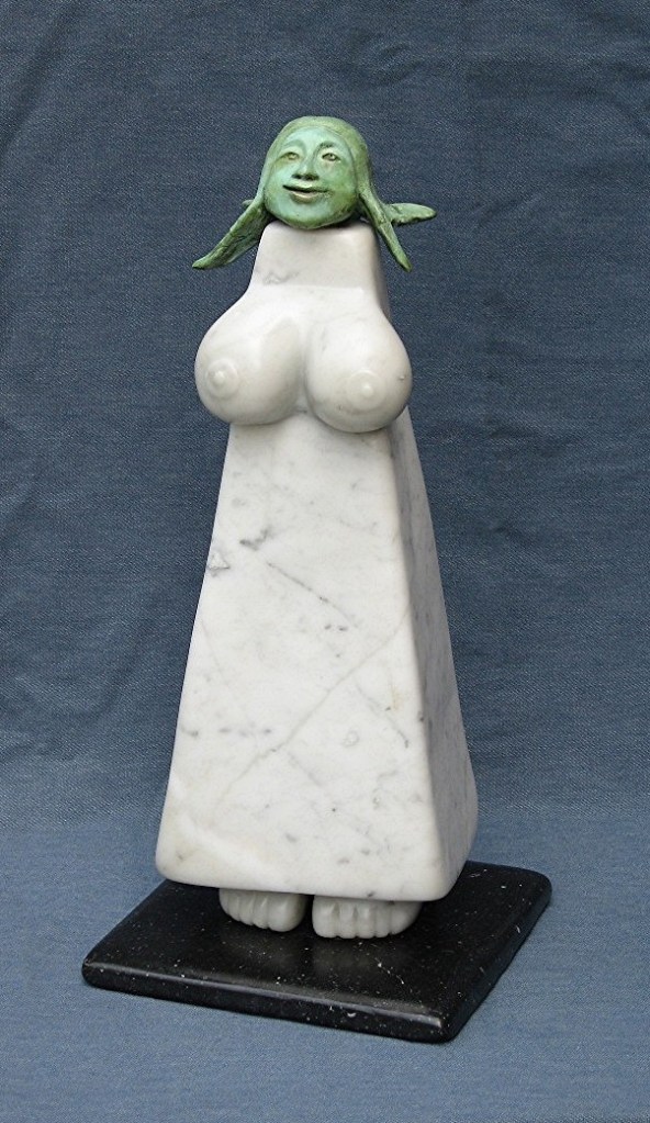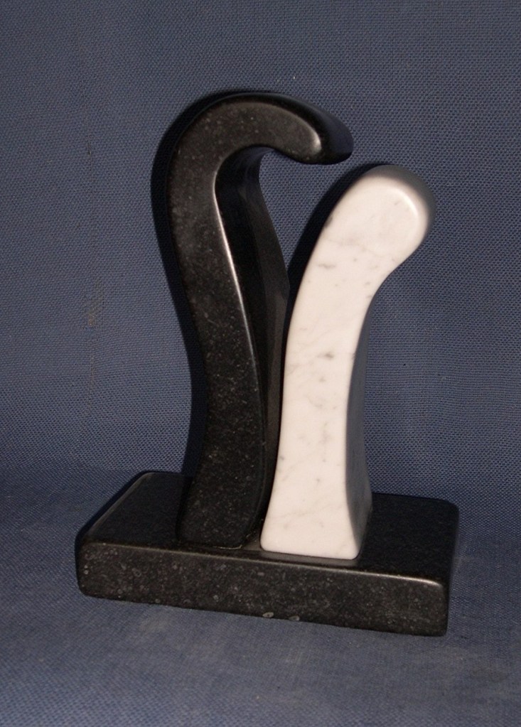At present, I am concentrating on combination works carved from white marble and black Kilkenny limestone. The fossils in the limestone and pieces of cast bronze add life to the contrasting colours.