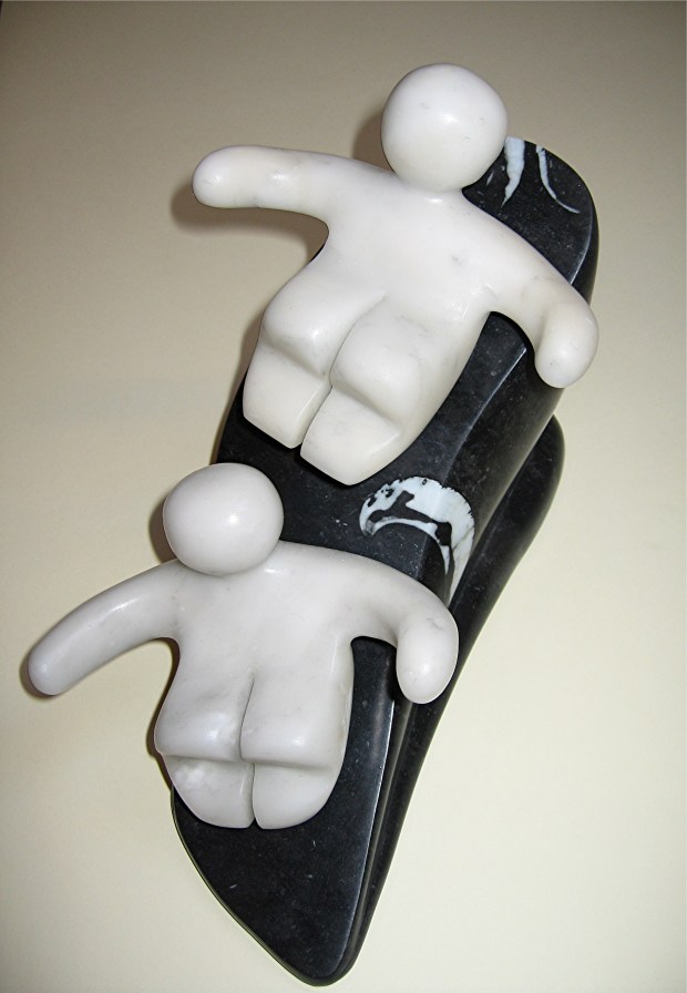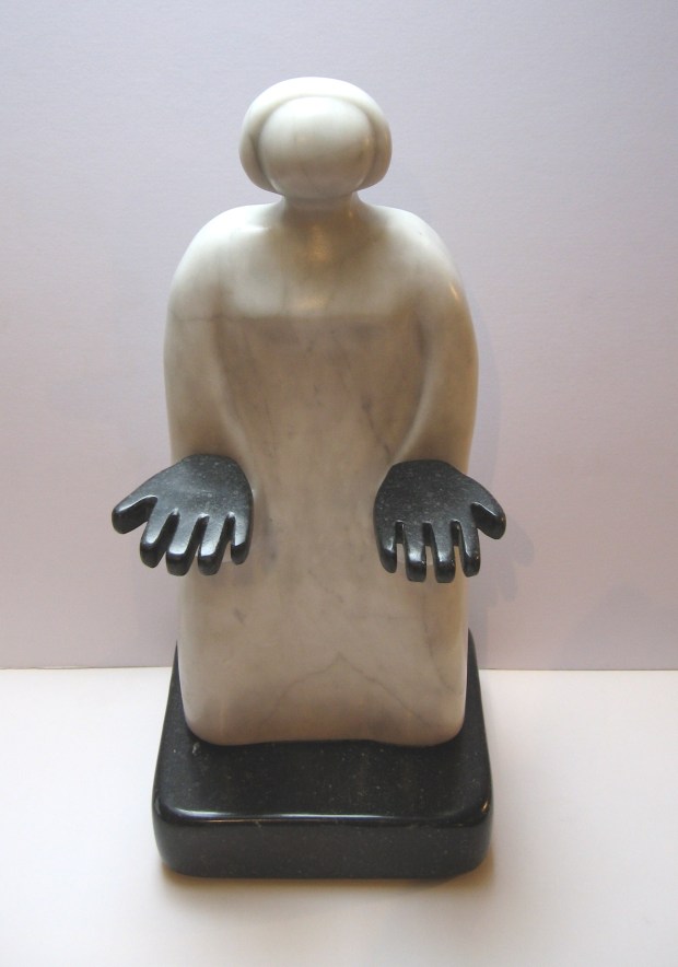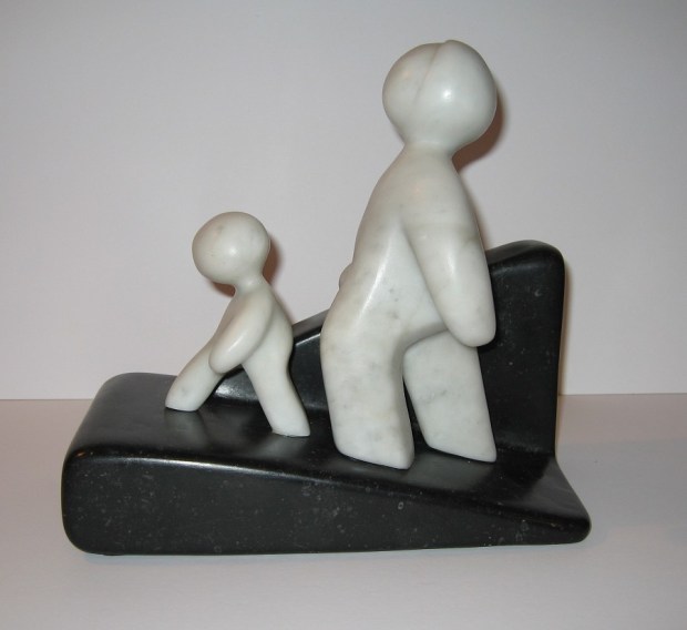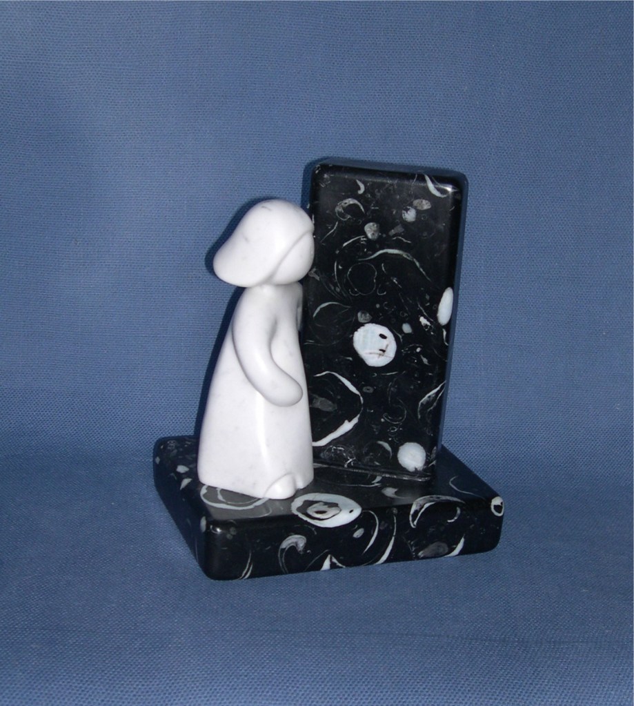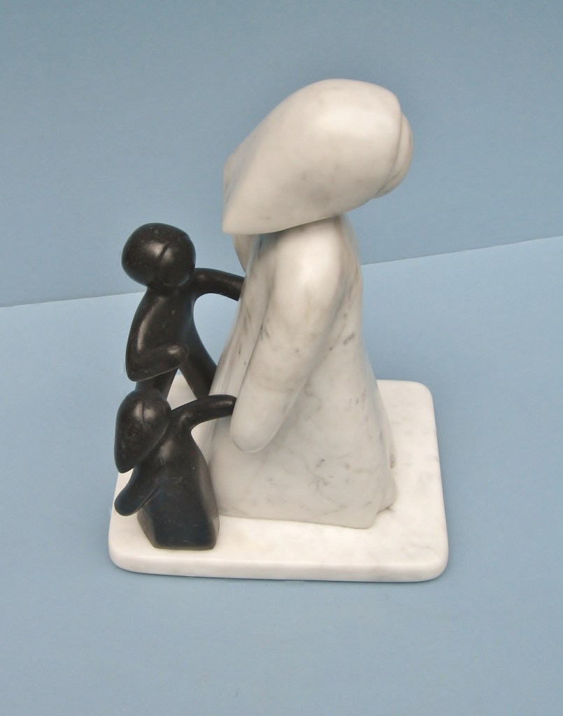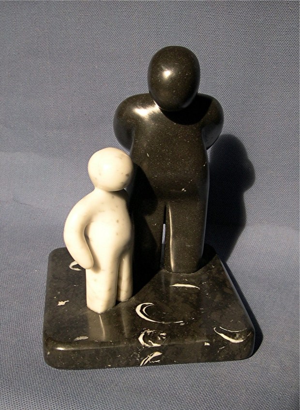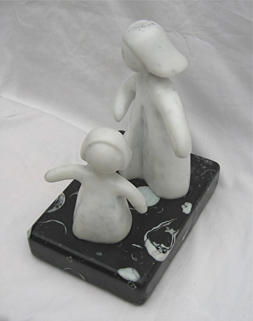 White Mask”White birds on the foam of the sea””Tread softly on my dreams””These are the days of our lives””The dancer is the dance””Identity””Precious Thing””Peace”Mother and Son”Quiet place””Outside looking in. Inside looking out””On the pig’s back”Grandfather”Watching the world go by””Bring on the clowns”“First steps”“Female strength””Comfort””Celebration”Close couple”At the center””All the little children”BottleGuardian Angel